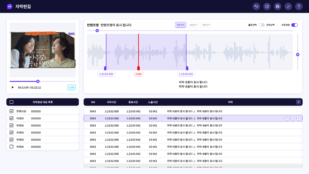 음성 인식 기술을 활용하여 자동으로 자막을 생성하고 편집할 수 있는 지능형 콘텐츠 제작 지원 플랫폼.