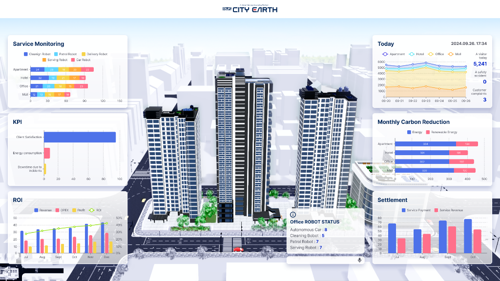 도시 인프라 및 건물 관리를 위한 지능형 서비스 로봇 통합 관제 플랫폼. 실시간 로봇 상태 모니터링, 작업 스케줄링 및 데이터 분석 대시보드를 제공합니다.