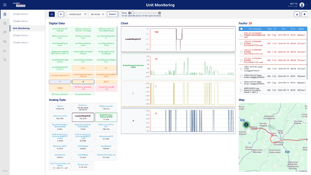 현대로템의 디지털 유지보수를 위한 통합 플랫폼. 실시간 장치 모니터링, 고장 진단 및 부품 관리 기능을 제공하여 철도 시스템의 효율적인 운영을 지원합니다.