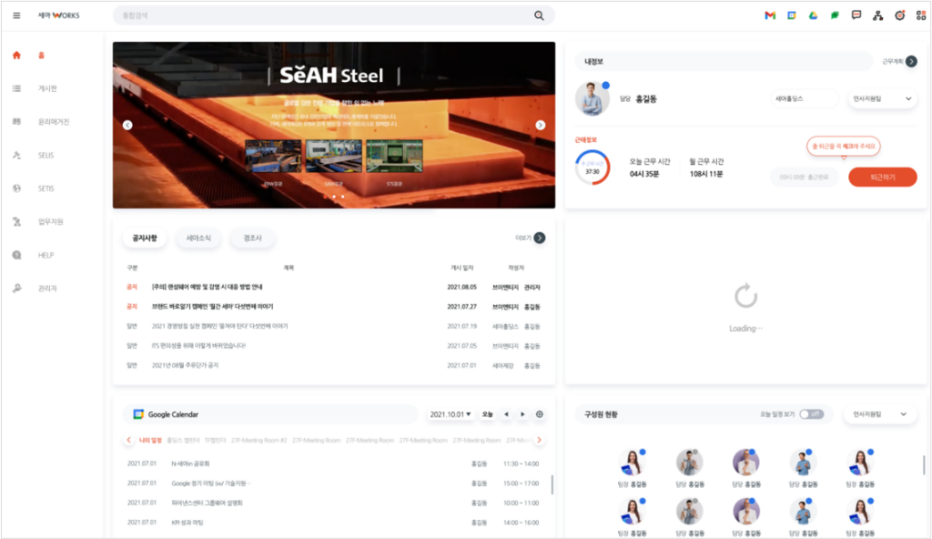 세아제강 임직원을 위한 효율적인 그룹웨어 퍼블리싱. 사용자 친화적인 인터페이스와 웹 표준 준수를 통해 업무 효율성을 높였습니다.